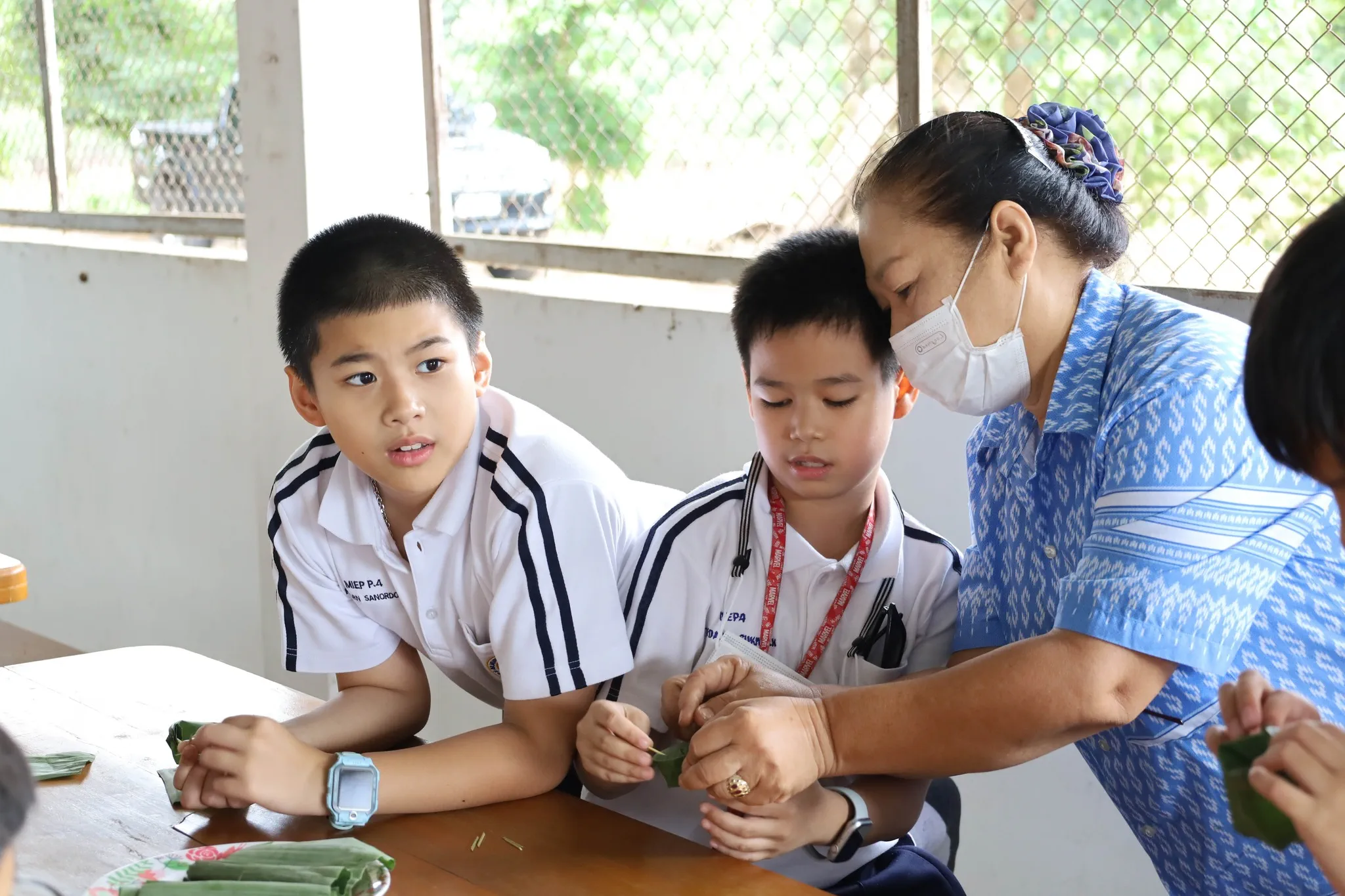 โดยผู้นำชุมชมและชาวบ้านที่วัดเกาะแก้ว ได้มาให้ความรู้กับเด็ก ระดับประถมศึกษา ป.4-ป.6 และน้องๆMIEP P.4-P.5 ทั้งงานจักสาน สาธิตการปลูกต้นไม้ สาธิตการทำกระทงสำหรับใส่ขนม แวะดูแม่น้ำสองสีที่สะพาน ทีไหล่มาบรรจบกัน เด็กๆได้รับประสบการณ์และความสนุกสนานไปพร้อมๆกันค่ะ
